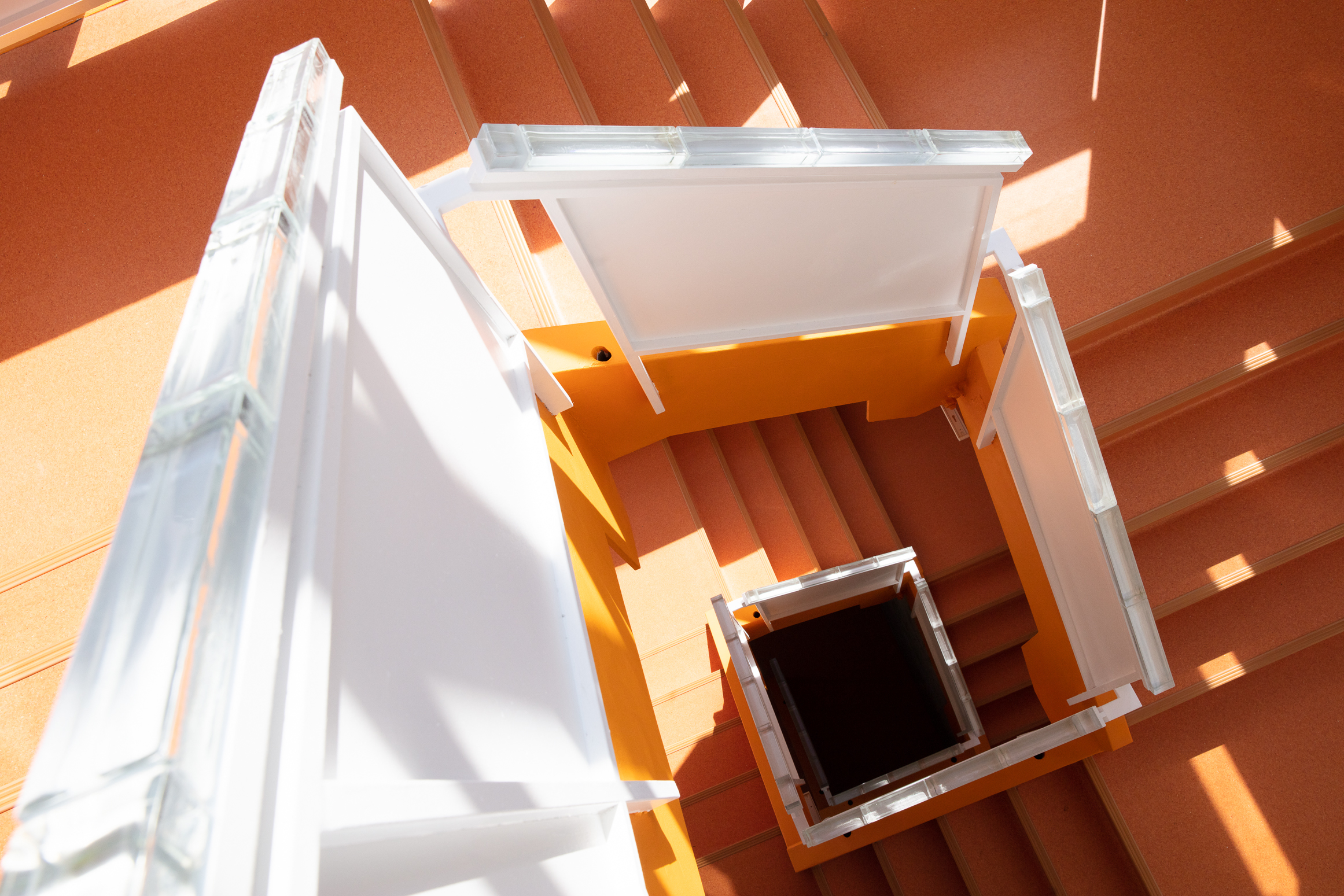 運用一至三樓的樓梯空間,透過不同品牌與展覽計畫呈現玻璃製品的應用,邀請民眾和玻璃工藝一起更上層樓。