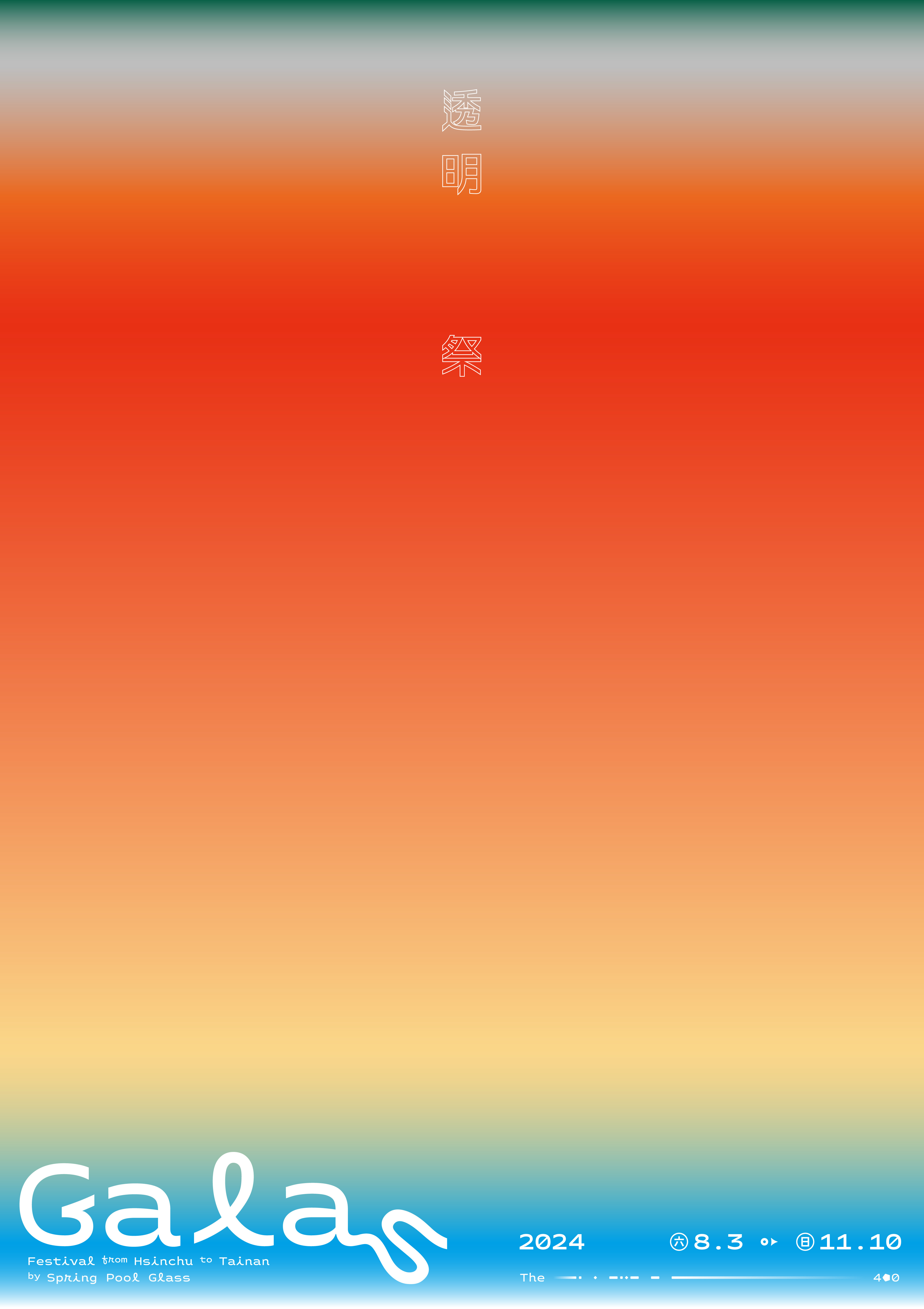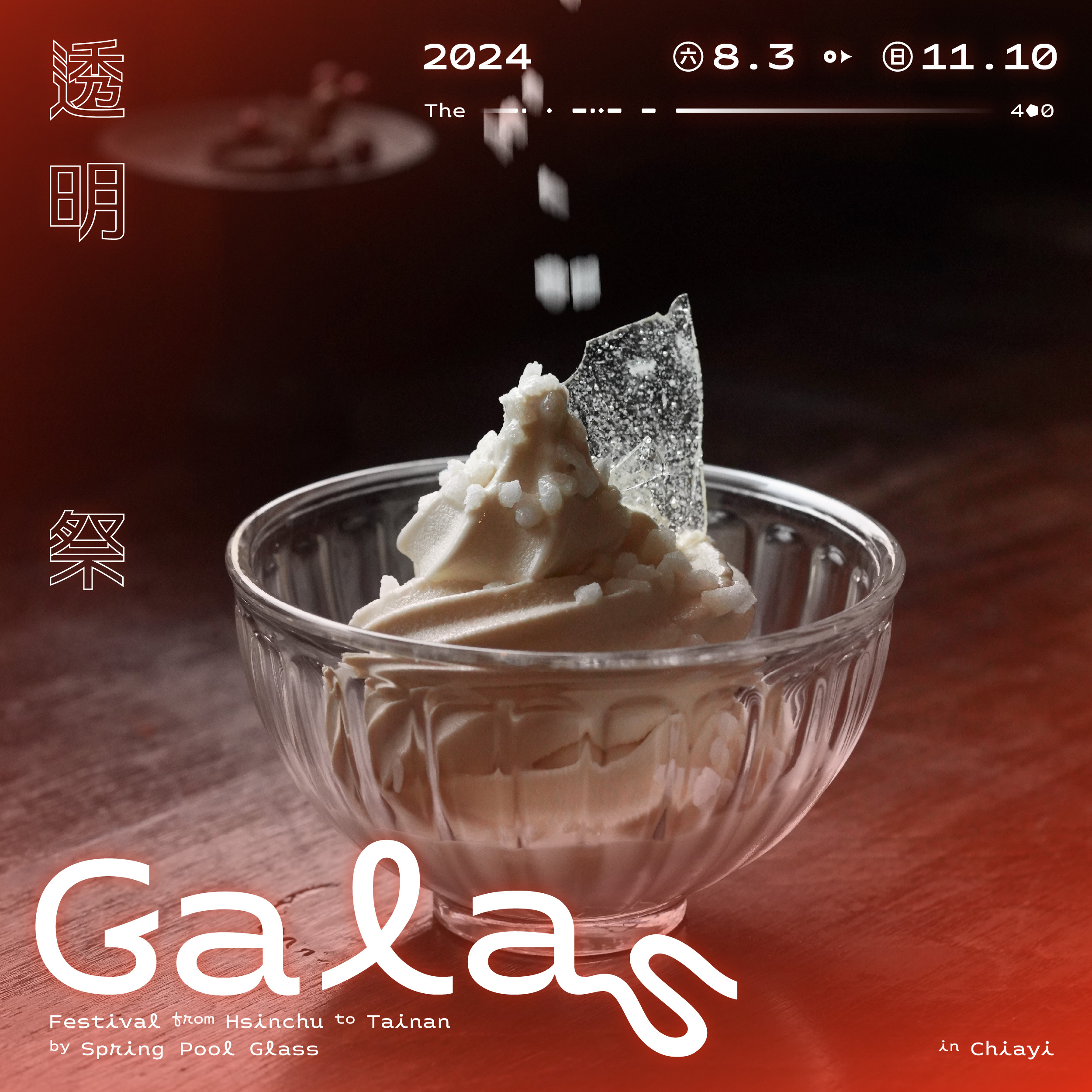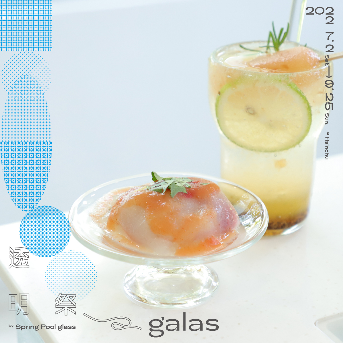 「透明祭__Galas」,藉由玻璃的「透明」為信號象徵善待環境的心態,邀請全臺灣不同類型的品牌、餐廳、店家與咖啡廳等共同響應透明祭,透過不同的形式共同體現循環意識,以春室為開端,一波波的泛起透明漣漪、擴散,讓彼此、大眾於日常生活中一同響應,行動上的參與也一波波喚起新竹過去玻璃工藝,榮光的記憶。