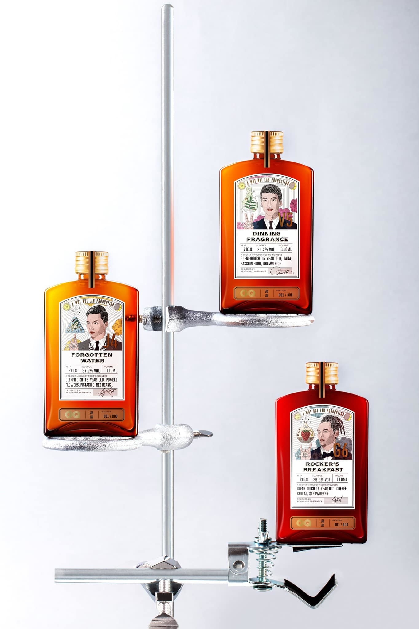 在這三款全新調酒中,三位調酒師們以來自蘇格蘭的格蘭菲迪15年單一麥芽威士忌、再加入各種天然食材與烈酒調製而成;而為了凸顯挑戰不可能的實驗精神,本次的調酒瓶身更特地找來致力於循環玻璃的「春池玻璃 Spring Pool Glass」,以添加琥珀色回收玻璃溶解、半手工瓶製程,訂製出實驗性與時髦感兼具的全新瓶身,讓台灣的回收玻璃徹底體現全新的設計質感。