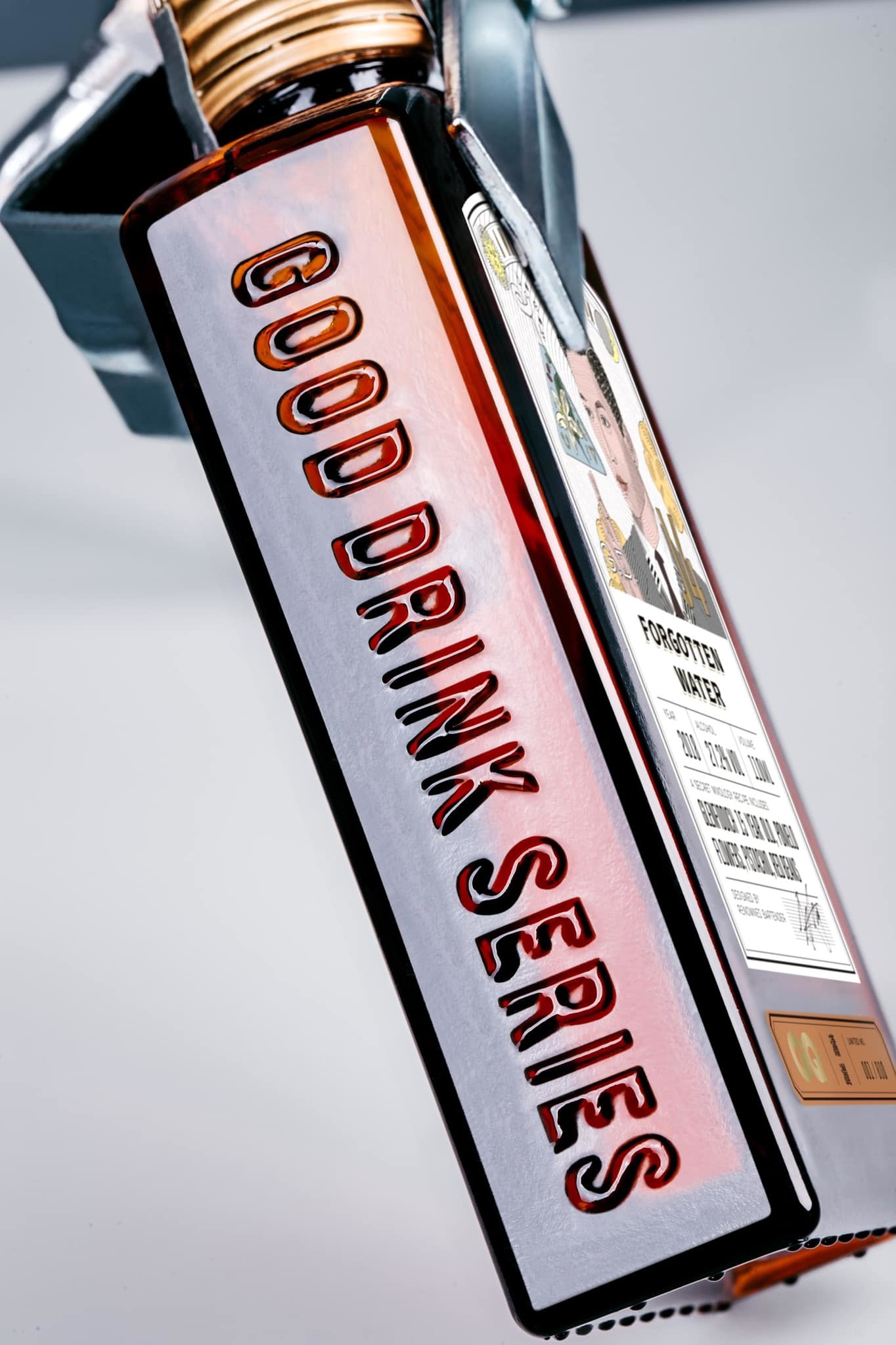 瓶身以特殊製程的半手工製作,並打造世界調酒界規格的瓶裝調酒設計,手握質感也讓人愛不釋手。也因填裝液體顏色的差異,徹底呈現琥珀色與不同通透度的光線質感。用完的酒瓶甚至可以再次裝填清水,成為可重複使用並極具美感的貼身水瓶,徹底達成具實用並擁有美感的循環經濟。